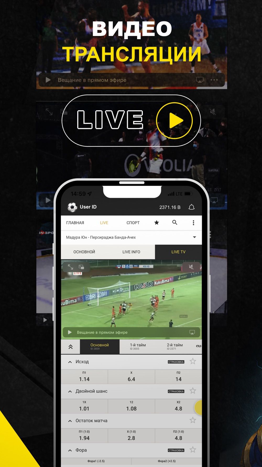 | Live | Здесь можно заключать пари по ходу матча. События фильтруются по регионам и видам спорта. Некоторые матчи сопровождаются прямыми эфирами. |