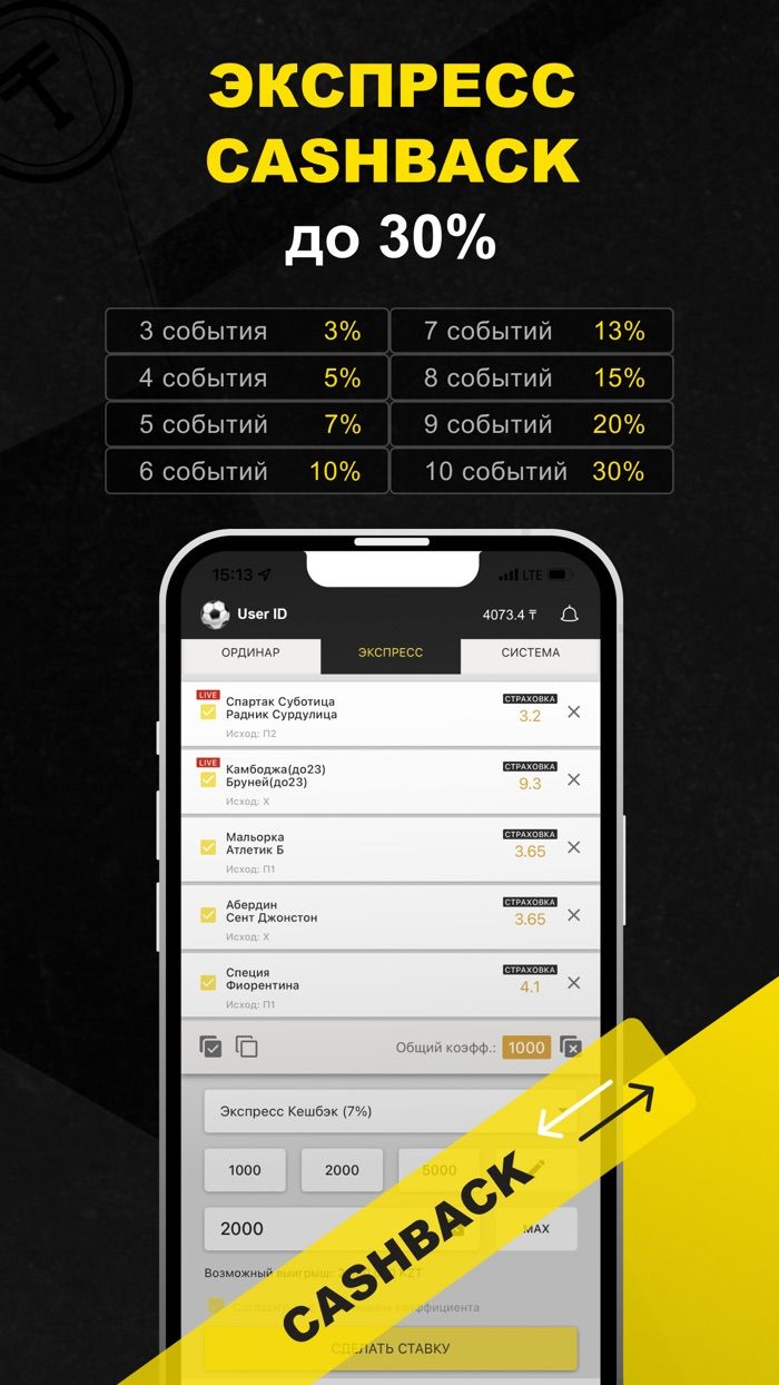 Новички, завершившие регистрацию, получают от букмекера в качестве приветствия бонус, который начисляется после пополнения счета от 1000 тенге. Максимальные размеры подарка составляют 100 000 тенге. Вывод бонусных средств возможен при условии соблюдения определенных требований по отыгрышу.