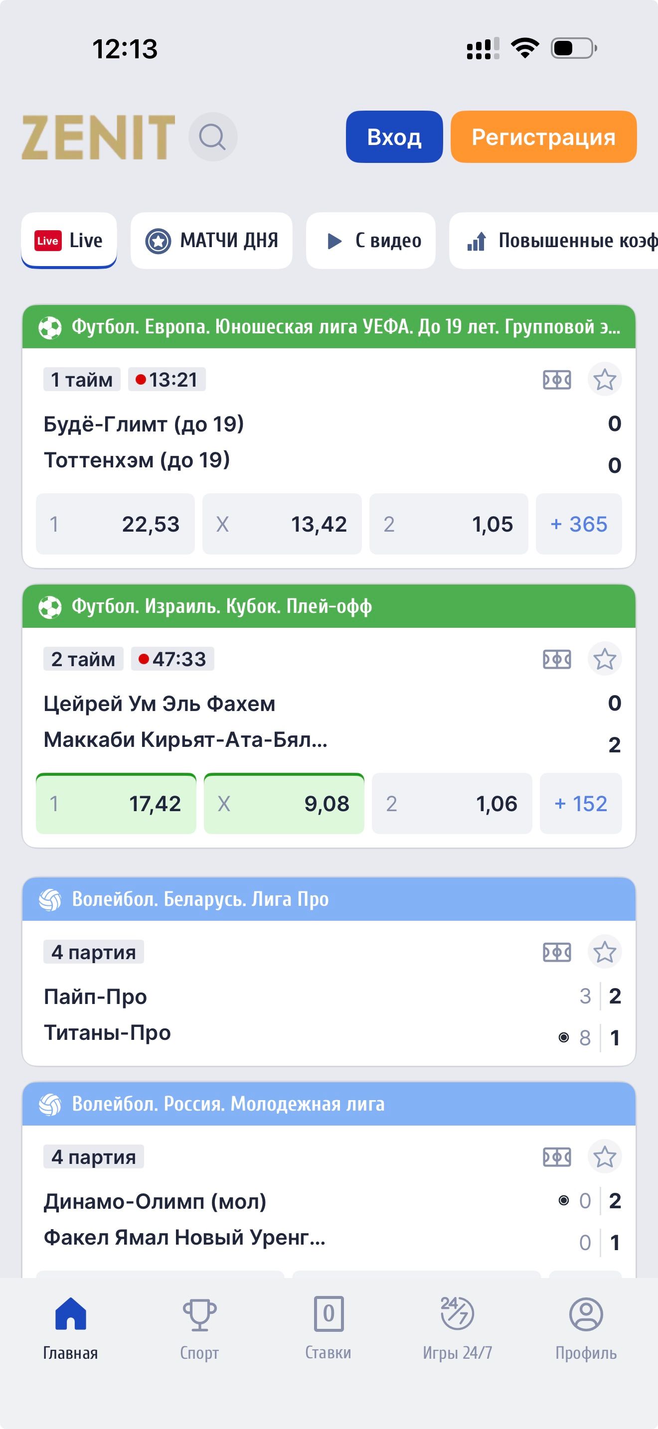 Приложение букмекерской компании «Зенит» имеет полный функционал основного сайта. Вы также можете пройти регистрацию, пополнить счет и снять деньги. Возможно смотреть некоторые трансляции игр, но выбор минимален.
