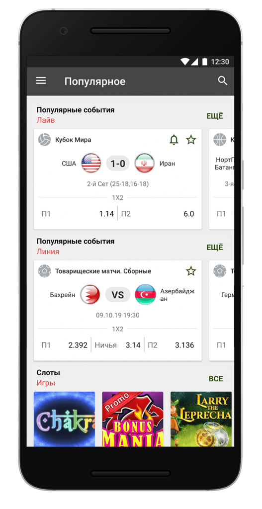 Приложение Astekbet использует широкий выбор настроек. На главной странице приложения Astekbet для Андроид размещены популярные события – в лайве и по предматчевой линии, а чуть ниже – слоты, мини-игры и экспресс дня.
