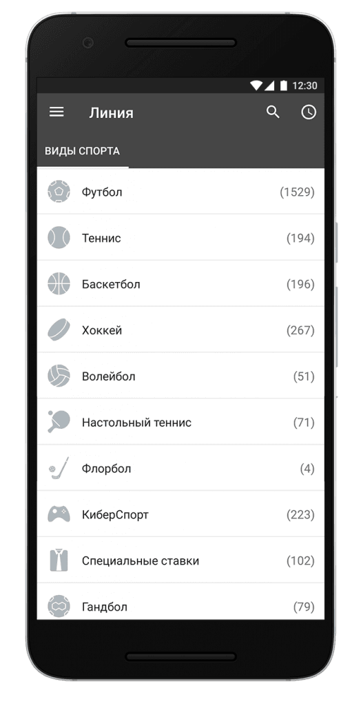В приложении представлено большое количество видов спорта и рынков. Имеются как популярные виды спорта, так и довольно эксклюзивные: лыжное двоеборье, крикет, троттинг, спидвей, гольф и другие. Есть возможность сделать ставку на политические события и евровидение, погоду и другое. Особое внимание уделено футболу и теннису. Для быстрого поиска предлагается поисковая строка и реализована функция быстрой ставки. В плане количества предлагаемых рынков все очень даже хорошо.