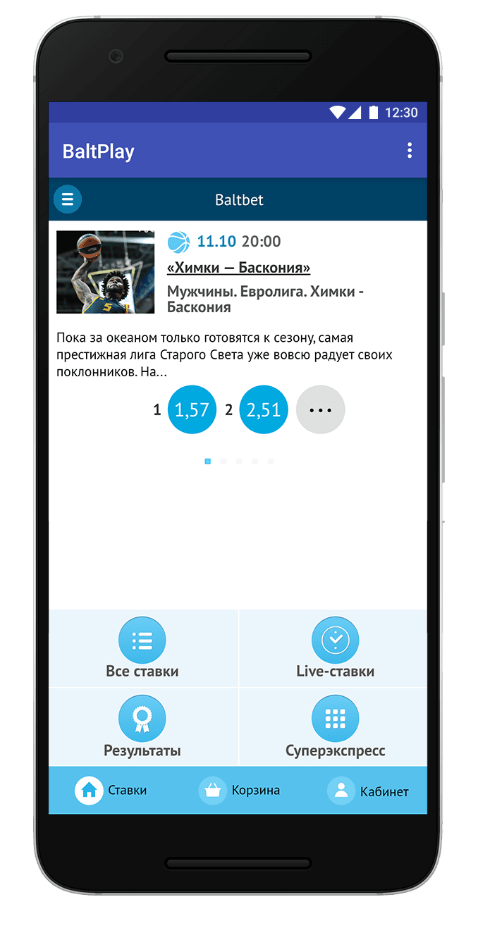 Войти в мобильное приложение BaltBet для Android, можно и без регистрации, она нужна только для ставок.