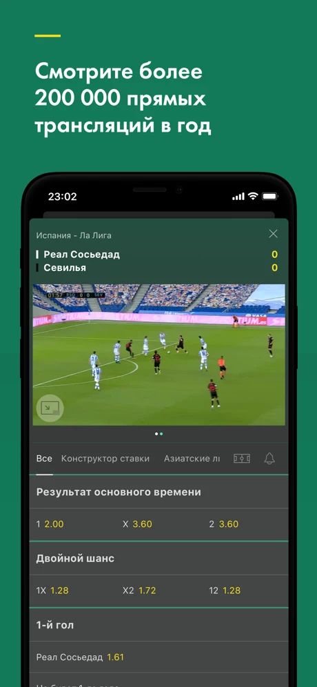 Разделов со ставками два: «Спорт» (он же линия) и «В игре» (он же live).