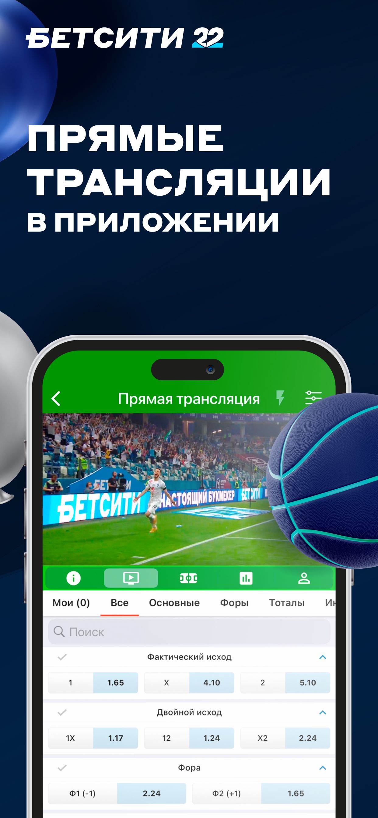 Приложение «Бетсити» оставляет приятное впечатление по интерфейсу. Никакого дублирования информации, все находится на своих местах. В верхней панели навигации вы можете наблюдать актуальные акции и бонусы. На видном месте расположены разделы с линией и лайвом.