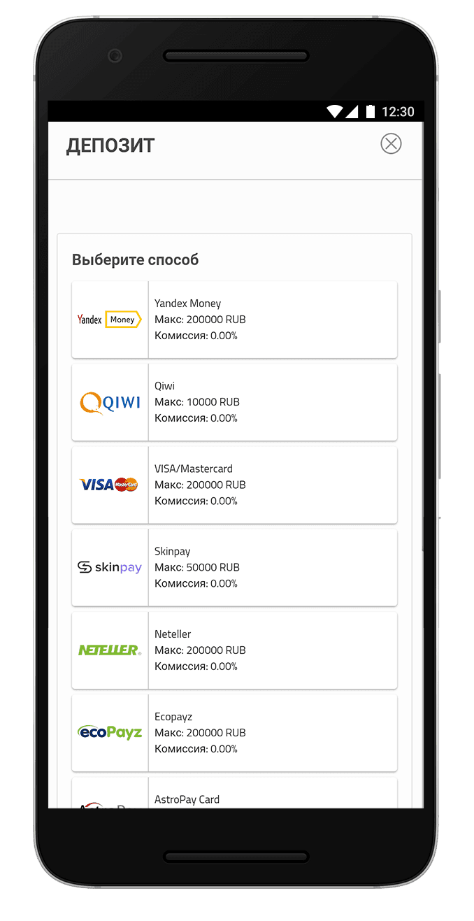 Приложение поддерживает широкий спектр способов пополнения и снятия средств, включая криптовалюту, например, биткойны. Пользователи могут вносить депозиты через Visa, MasterCard, банковские платежи, SkinPay, Skrill, Neteller, Bitcoin, PaysafeCard, ecoPayz и AstroPay. Для вывода вы можете использовать те же методы. Однако имейте в виду, что могут быть некоторые сборы.