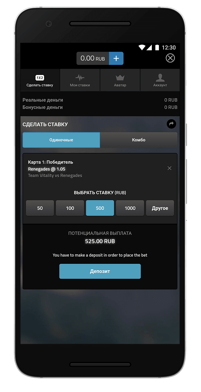Интересно оформлен экран матча, довольно просто сделать ставку.
