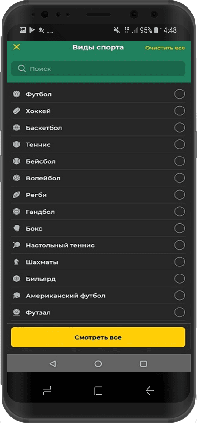 Нативное приложение на андроид от БК Betwinner предлагает тот же список продуктов, что и стационарный сайт букмекера.