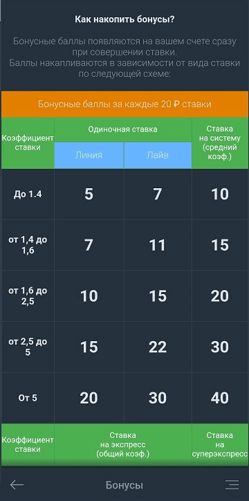 По ее условиям букмекер начисляет бонусные баллы, которые можно обменивать на: