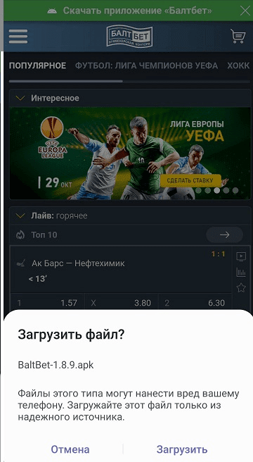 Скачать приложение «Балтбет» для Андроид можно на официальном сайте букмекера. Для этого: