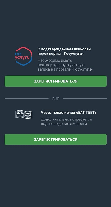 Процесс создания игрового профиля в приложении Baltbet для Андроид доступен в двух форматах:
