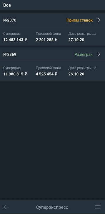 Ставки в приложении «Балтбет» для Андроид производятся стандартным способом. После нажатия на коэффициент событие автоматически отправляется в корзину, которая появляется в нижнем левом углу экрана. В купоне нужно выбрать тип ставки (ординар, экспресс, система), указать сумму и заключить пари. Заполнить купон к очередному розыгрышу тотализатора можно в разделе «Суперэкспресс».