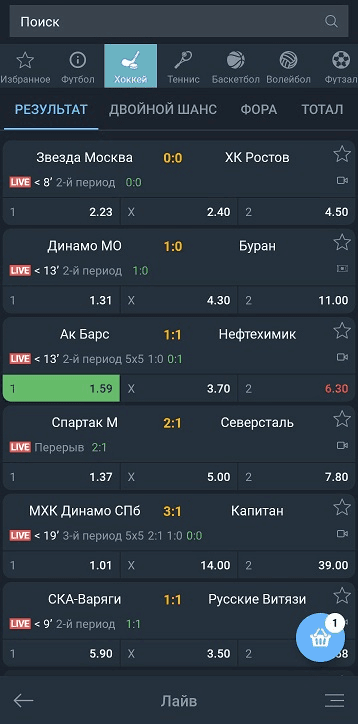 Событий много, КФ нормальный, лайф на экране, все что нужно есть. Плюсом само приложение работает быстро и не нужно ждать пока примут ставку, ведь здесь очень важна именно скорость принятия, в любой момент все может измениться. Вывод без проблемный, скачать и установить просто. Не нужно искать ссылки и зеркала, все официально.