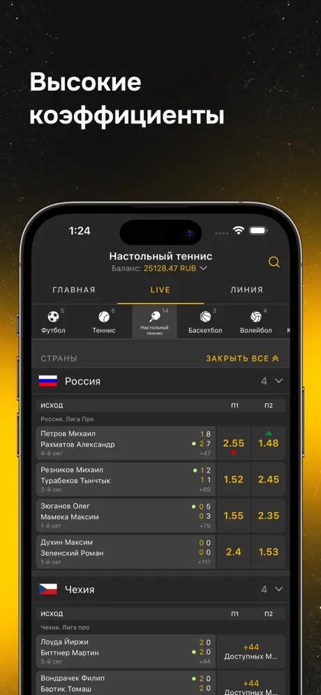 Для просмотра всех доступных матчей, кликните на Линия или Live.