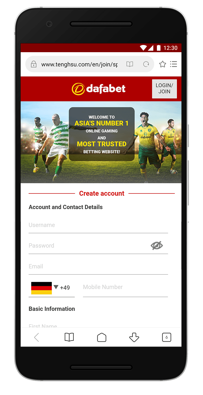 Для создания новой учетной записи пользователь переходит к кнопке «Регистрация» в шапке приложения Dafabet и вводит логин, адрес электронной почты, пароль, имя, фамилию, дату рождения, номер мобильного телефона и код купона (если есть). Выбирает из представленного списка валюту, принимает условия и нажимает «Присоединиться».