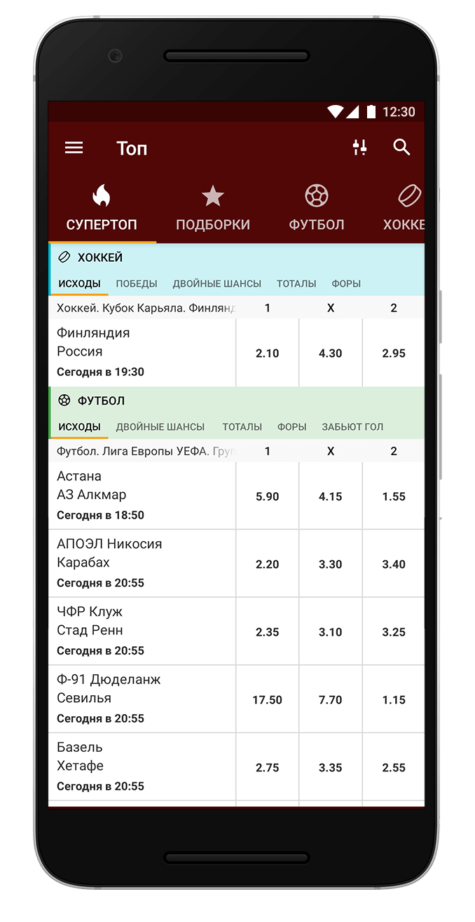Приложение Fonbet.kz оставляет хорошее впечатление. Весь интерфейс выполнен в светлых оттенках. В качестве основного цвета выбран темно красный, для акцентов используется светлые оттенки синего и зеленого, а также оранжевый. Интересно отрисованы иконки видов спорта. Каждый символ легко узнаваем.