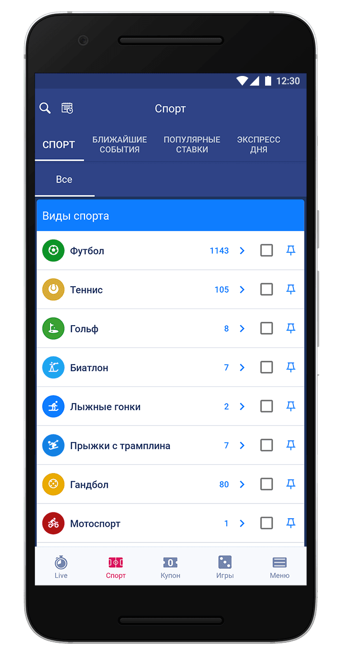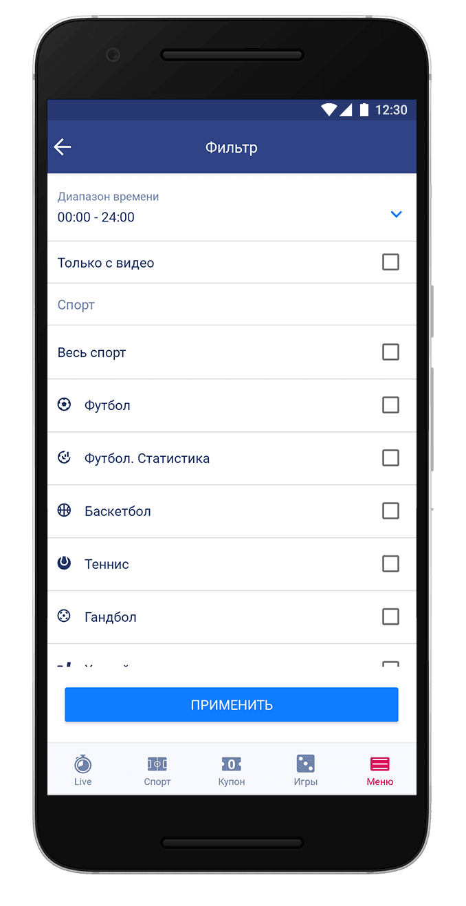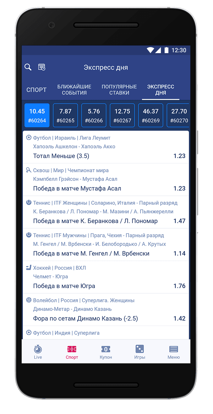 Что можно сказать о линии? Она вполне достойная для такого приложения. Игроку доступны около тридцати видов спорта и конечно же, как всегда особое место занимает футбол. Нормальным является востребованность топ лиг и чемпионатов.