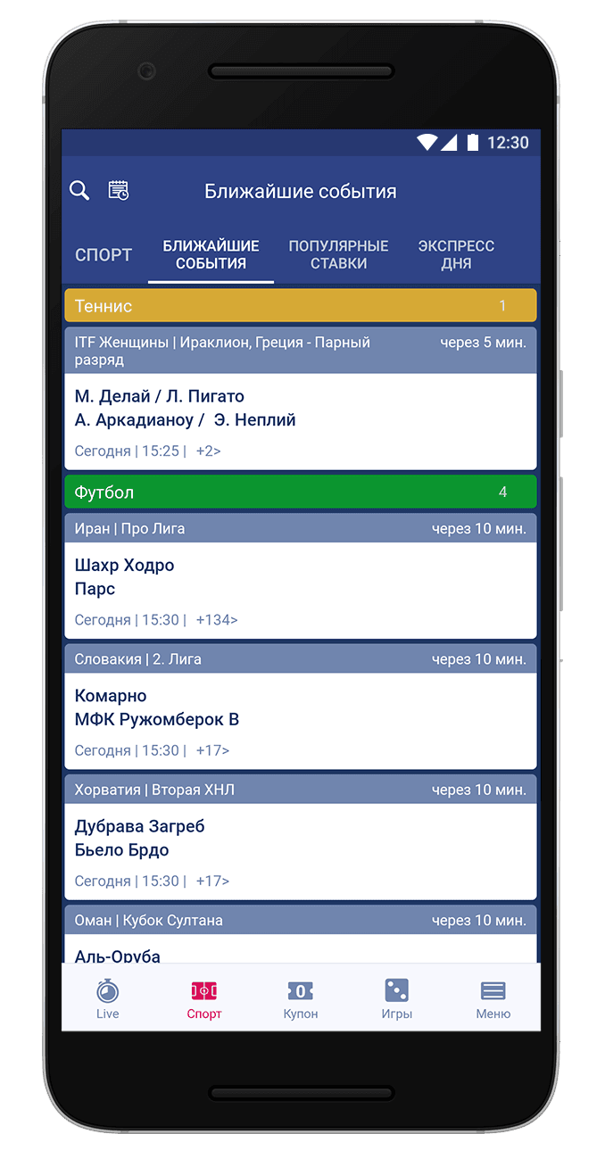 Функциональная составляющая вполне стандартная и вопросов у опытных пользователей не вызовет. Новички смогут быстро разобраться с тем, где что находится, и куда следует нажать, чтобы попасть в тот или иной раздел. Внизу, как обычно, список доступных для ставок дисциплин, в центре роспись выбранного чемпионата или события, а справа купон. Реклама, к слову, отсутствует в приложении, обычно у других БК она выделяется и мозолит глаза.