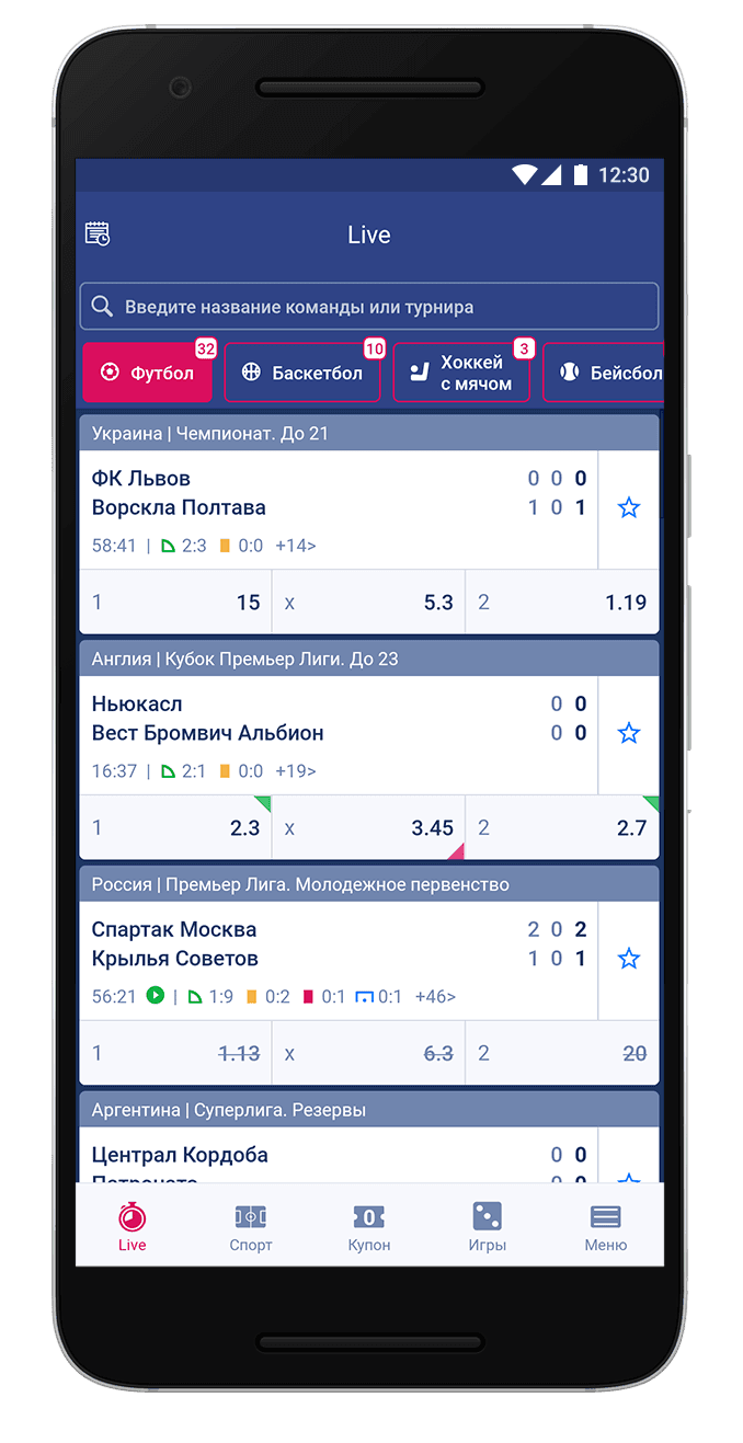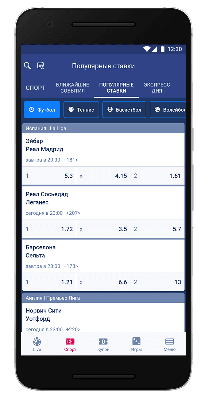 И все же букмекер предоставляет и менее популярные чемпионаты. Более того в приложении бывают и нестандартные предложения. Например у клиентов БК популярны ставки на трансферы. Кроме футбола можно выделить баскетбол. Остальные виды спорта расписаны довольно скудно. В линии можно найти и набирающий популярность киберспорт, однако исключительно крупные турниры типа International. Наибольший объем исходов, разумеется, имеет футбол. Все зависит от уровня соревнования, на топовые букмекер предлагает до двух сотен рынков.