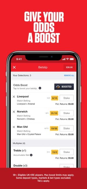 Приложение Ladbrokes обладает хорошим дизайном, суперэлегантный макет похож на сайт Ladbrokes для ПК. Интерфейс простой в навигации и все функции хорошо организованы. Благодаря этому вы можете быстро найти любое событие. Хотя интерфейс имеет ограниченное пространство, меню обладает отличной архитектурой, с которой легко ориентироваться. Общая компоновка приложения Ladbrokes проста и элегантна. Центральная тема макета - красная, и она имеет относительно похожий дизайн, как и версия для ПК.