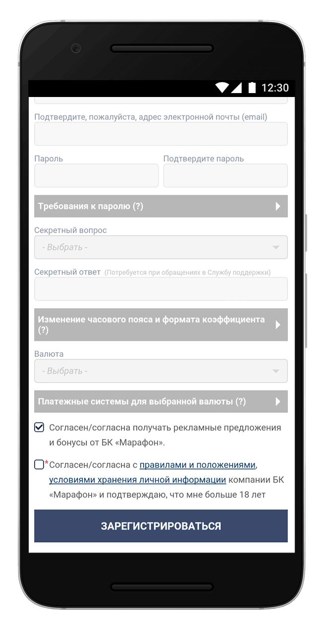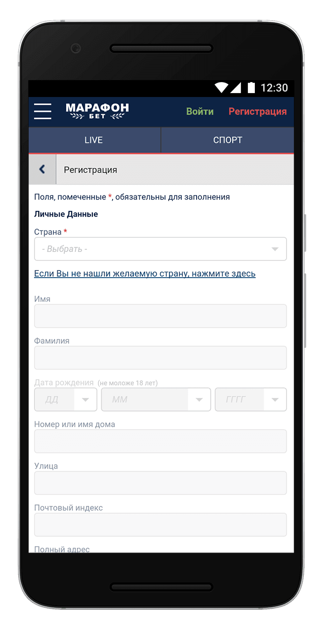 Приложение «Марафона» можно использовать без регистрации: смотреть события и добавлять в купон. Пользователя просят авторизоваться только при заключении пари.
