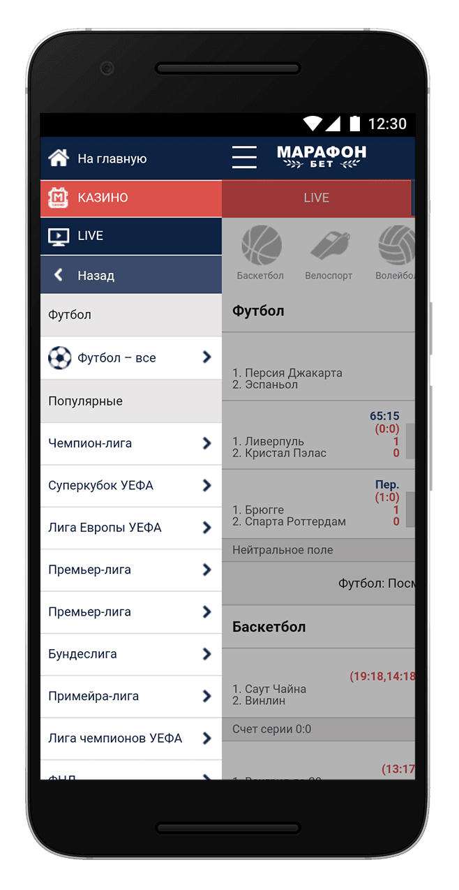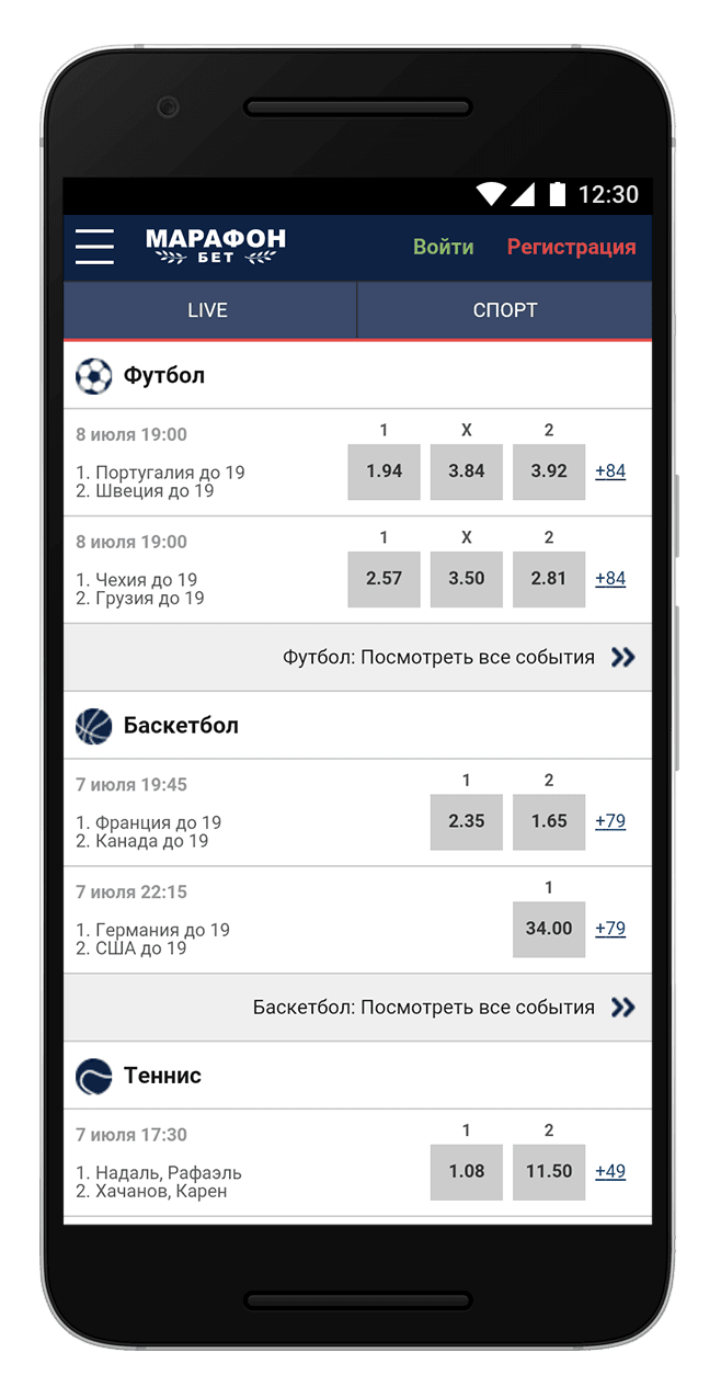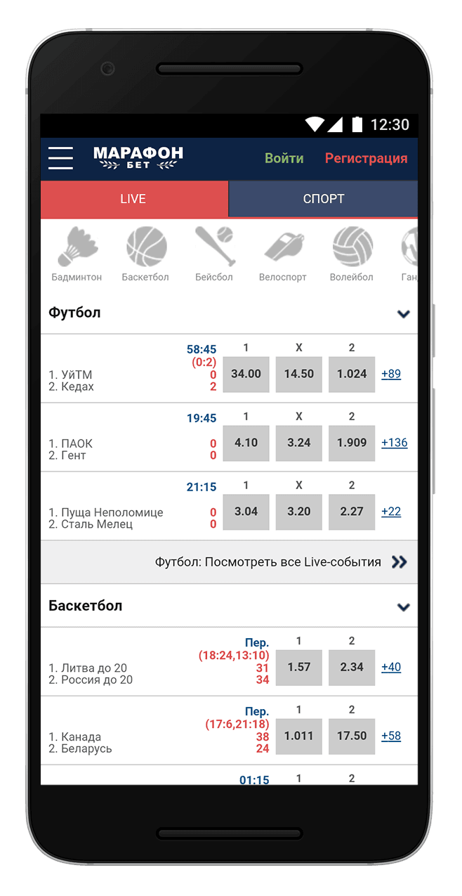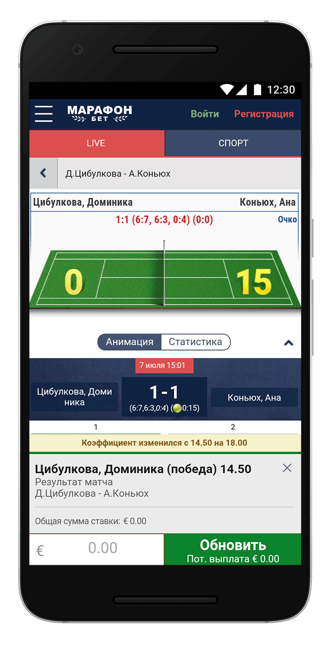Приложение букмекерской конторы «Марафон» для Android позволяет игрокам удобно делать ставки как в прематче, так и по ходу события. В обоих случаях выбранная ставка перебрасывается сразу в купон для заключения пари. Игроку достаточно войти в программу и авторизоваться в системе, затем в любом игровом режиме выбрать матч и нажать коэффициент нужного события, после чего в купоне ввести сумму ставки и завершить процедуру оформления пари. Удобно и то, что в случае изменения размера коэффициента в корзине это будет показано. Ставка принимается достаточно быстро.