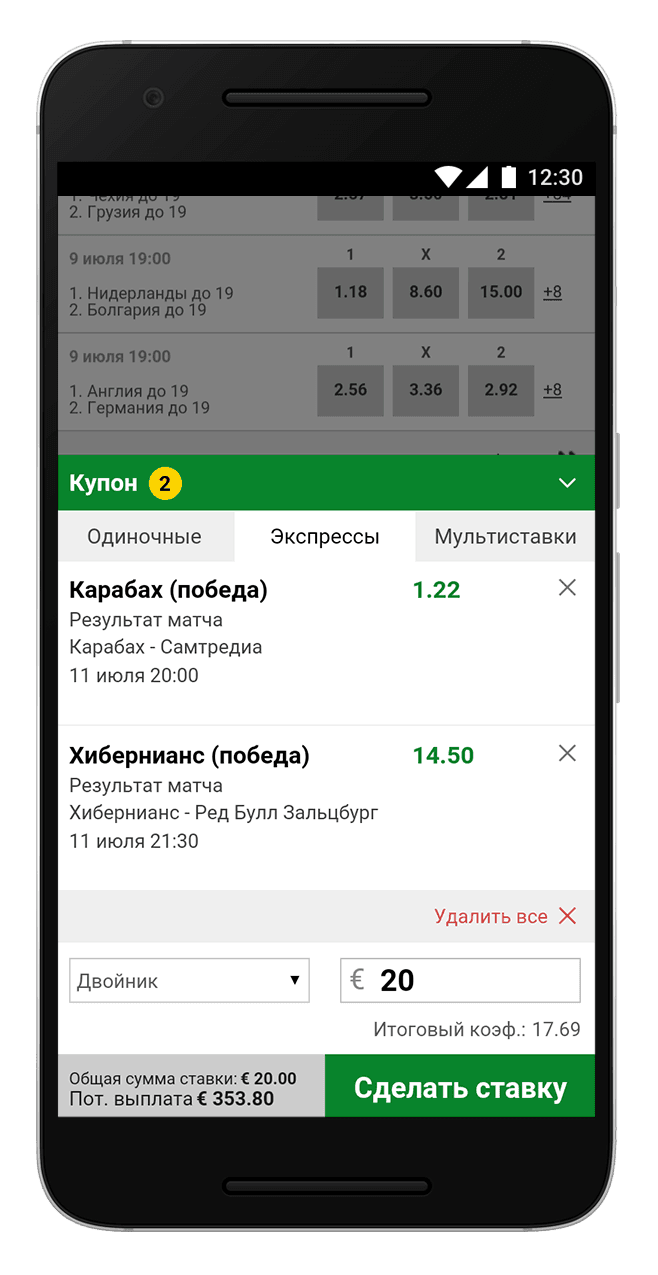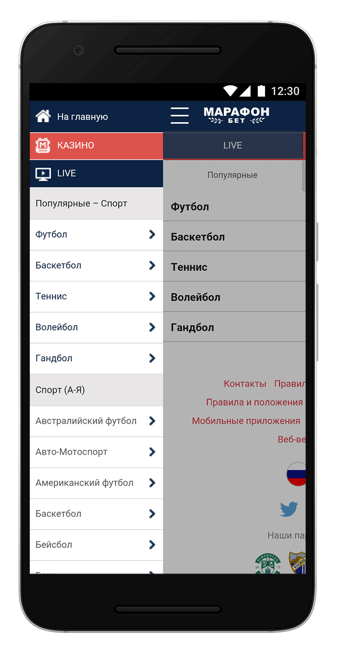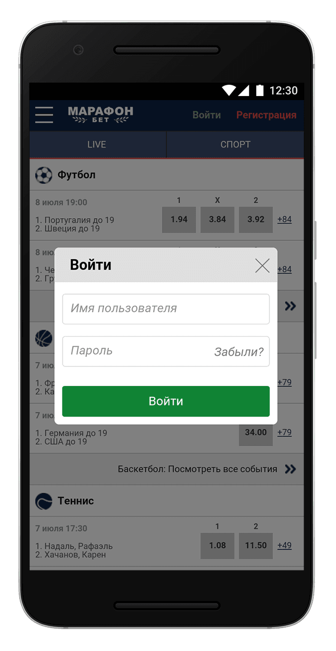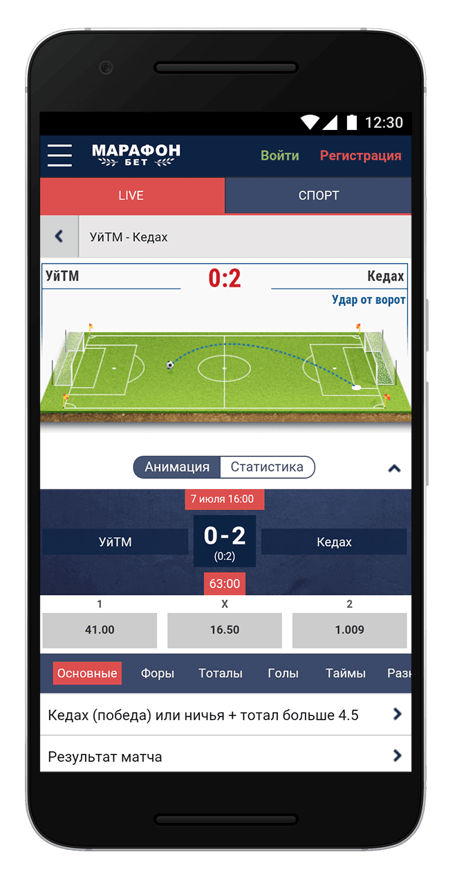 Приложение букмекерской конторы «Марафон» для Android позволяет игрокам удобно делать ставки как в прематче, так и по ходу события. В обоих случаях выбранная ставка перебрасывается сразу в купон для заключения пари. Игроку достаточно войти в программу и авторизоваться в системе, затем в любом игровом режиме выбрать матч и нажать коэффициент нужного события, после чего в купоне ввести сумму ставки и завершить процедуру оформления пари. Удобно и то, что в случае изменения размера коэффициента в корзине это будет показано. Ставка принимается достаточно быстро.