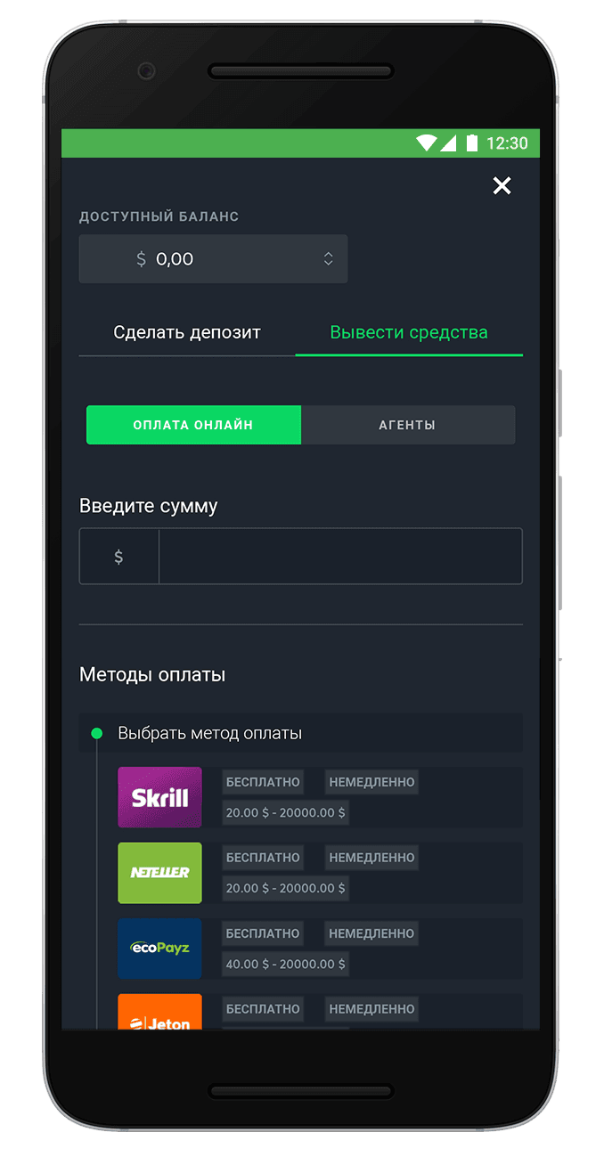 Букмекерская контора для финансовых расчетов с игроками использует порядка 9 платежных систем. Среди них банковские карты Visa и MC (исключение доллары США), популярные у игроков электронные кошельки Skrill и Neteller, а также международные платежные операторы ecoPayz, Jeton, MuchBetter, SticPay и AstroPay.