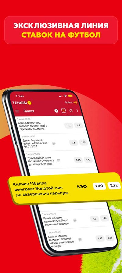 Приложение «Тенниси» для Android по своему дизайну и функционалу аналогично основному сайту компании. Пользователи могут делать ставки на спортивные и киберспортивные события в прематче и лайве. Утилита доступна только в русской версии.