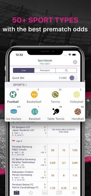 Раздел Live в приложении проработан отлично. Линия включает в себя большое число спортивных дисциплин с неплохой росписью событий. Наряду с традиционными видами, хорошо освещаются киберспортивные турниры. Многие события сопровождаются качественной инфографикой. Также в лайве есть анонс ближайших событий и матч-центр с результатами событий.