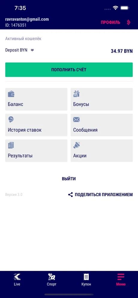 Если в приложении нужно пополнить счет или снять выигрыш, то для этого нужно: