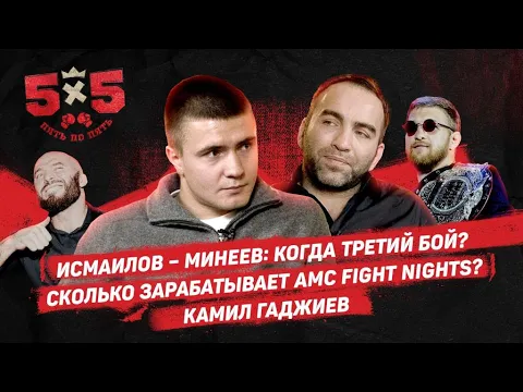 Президент AMC Fight Nights Камил Гаджиев стал гостем шоу 5х5 на ютуб-канале «РБ Спорт: Единоборства». Камил рассказал, когда состоится третий бой Исмаилова и Владимира Минеева, про бой мечты для Александр Шлеменко, экономике промоушена и конфликтах с бойцами.