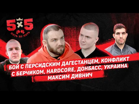 В 2014 году Максим Дивнич был непобежденным чемпионом М-1 и мог подписать контракт с UFC. 10 мая он проведет бой на Hardcore с одним из самых известных бойцов поп-ММА Мохаммедом Хейбати по прозвищу «Персидский дагестанец». За несколько дней до боя Максим стал гостем шоу «5х5» и рассказал в интервью «РБ Спорт», как он чувствует себя в трештоке поп-ММА, про детство на Донбассе, тренировки у Андрея Кочергина, периоде, когда мог закончить карьеру, а также про Майдан, Донбасс и Украину.