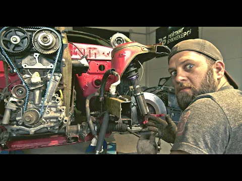 Пришло время максимально облегчать кузов - отрезаем все лишнее и ставим пластиковые двери. Снимаем двигатель с подрамника и после усиления кардинального лонжеронов готовимся водружать двигатель на них.