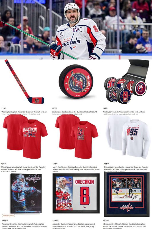 В честь исторического достижения Александра Овечкина, побившего рекорд по количеству голов в Национальной хоккейной лиге, клуб «Вашингтон Кэпиталз» представил памятную коллекцию. На официальном онлайн-портале клуба стала доступна линия товаров, посвященная снайперскому рекорду российского хоккеиста.