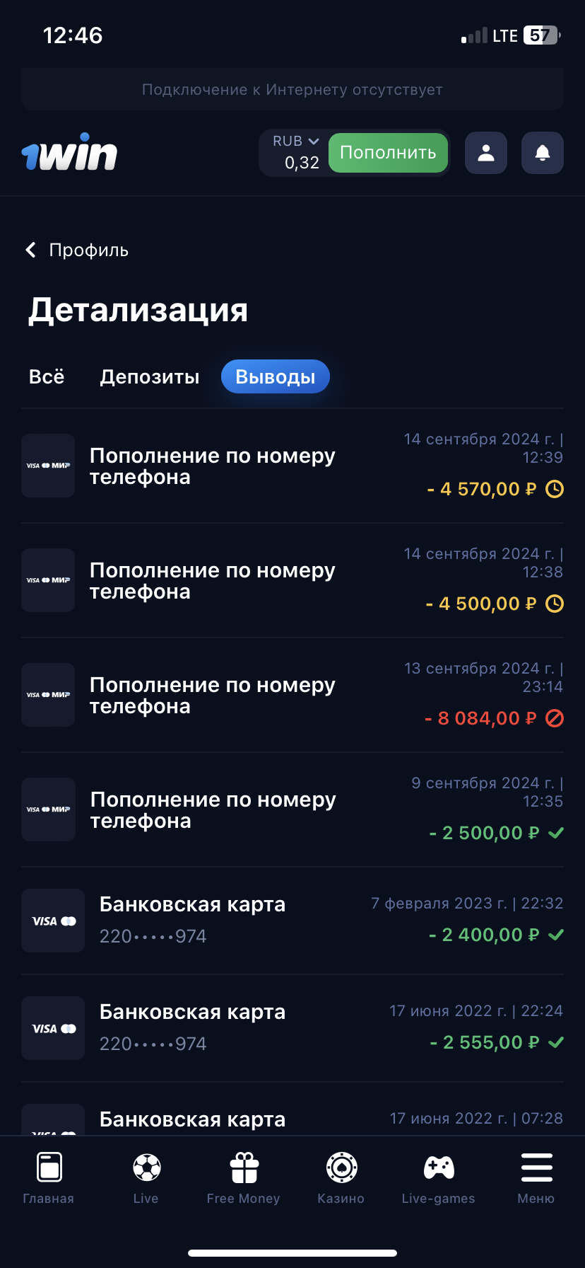 Здравствуйте, уже 3 день не могу вывести деньги, они просто отклоняют мой запрос и возвращают деньги на счет, обращался в тп, те говорят не по их вине, сейчас уже больше 33ч стоит заявка на вывод и я уверен, что до 48ч она не выведится и деньги вернутся на счет, 1 год назад начал играть в эту бк, выводы приходили за час-два. 1win прикольное казино с разнообразными играми, но с выводами у них имеются проблемы. Помогите пожалуйста ID 32939196