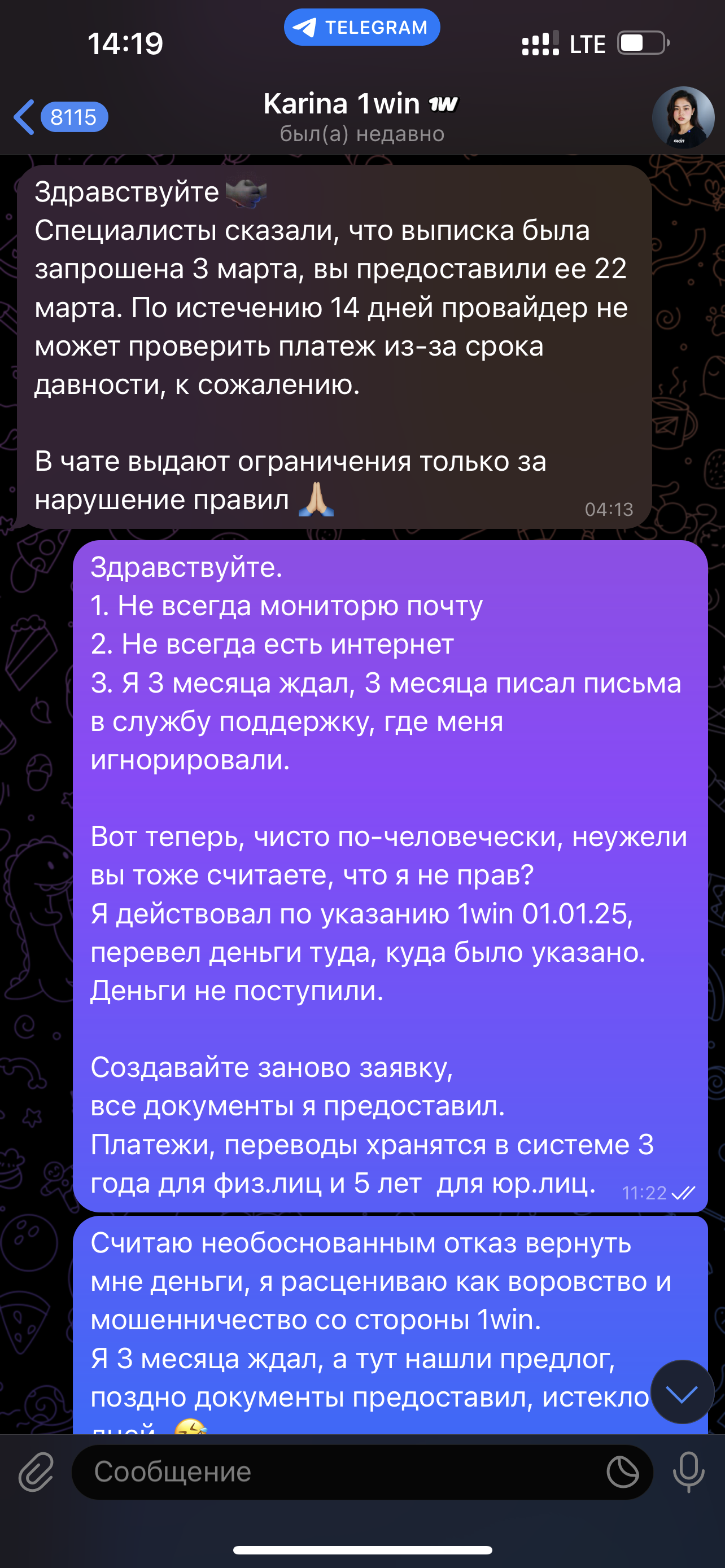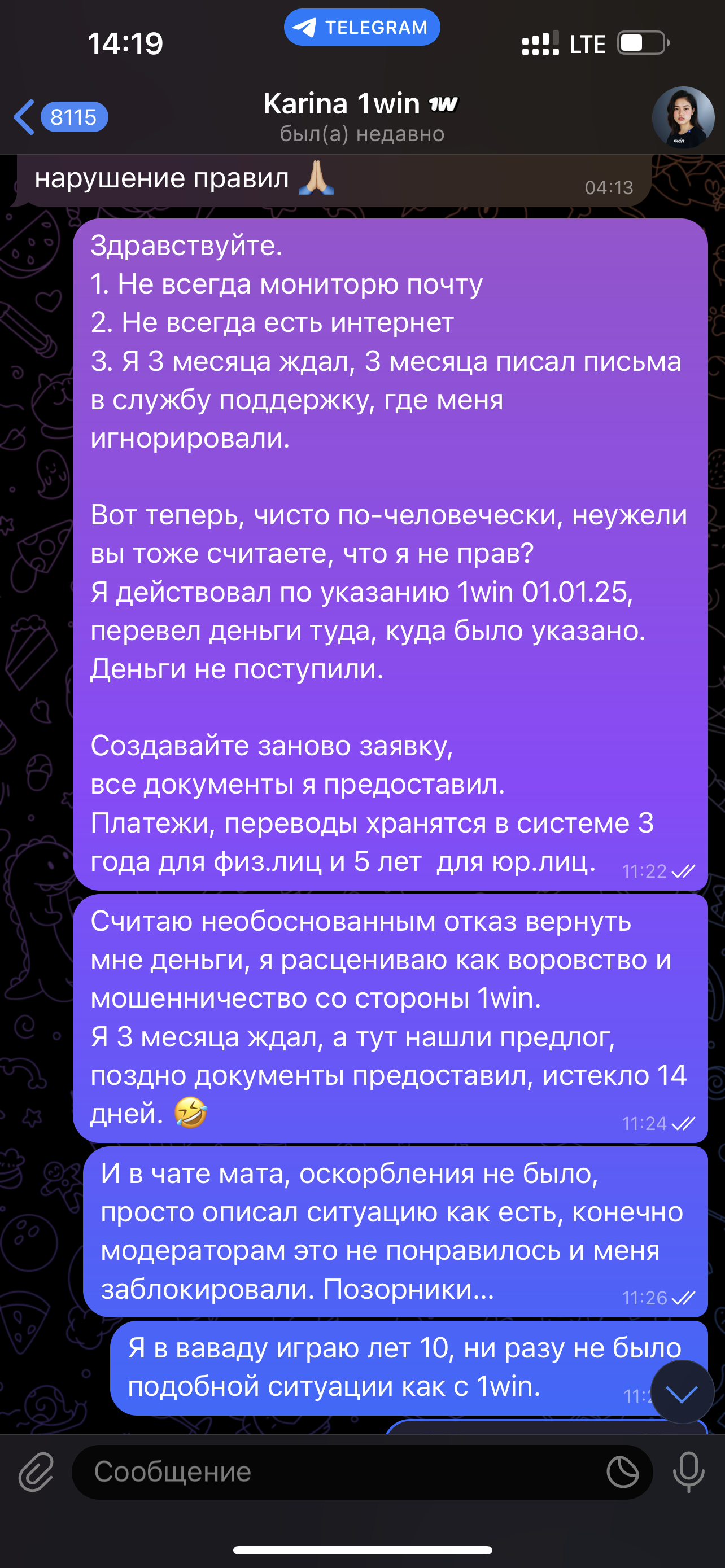 Ознакомьтесь друзья, как меня 1win кинул на депозит в 10006руб.