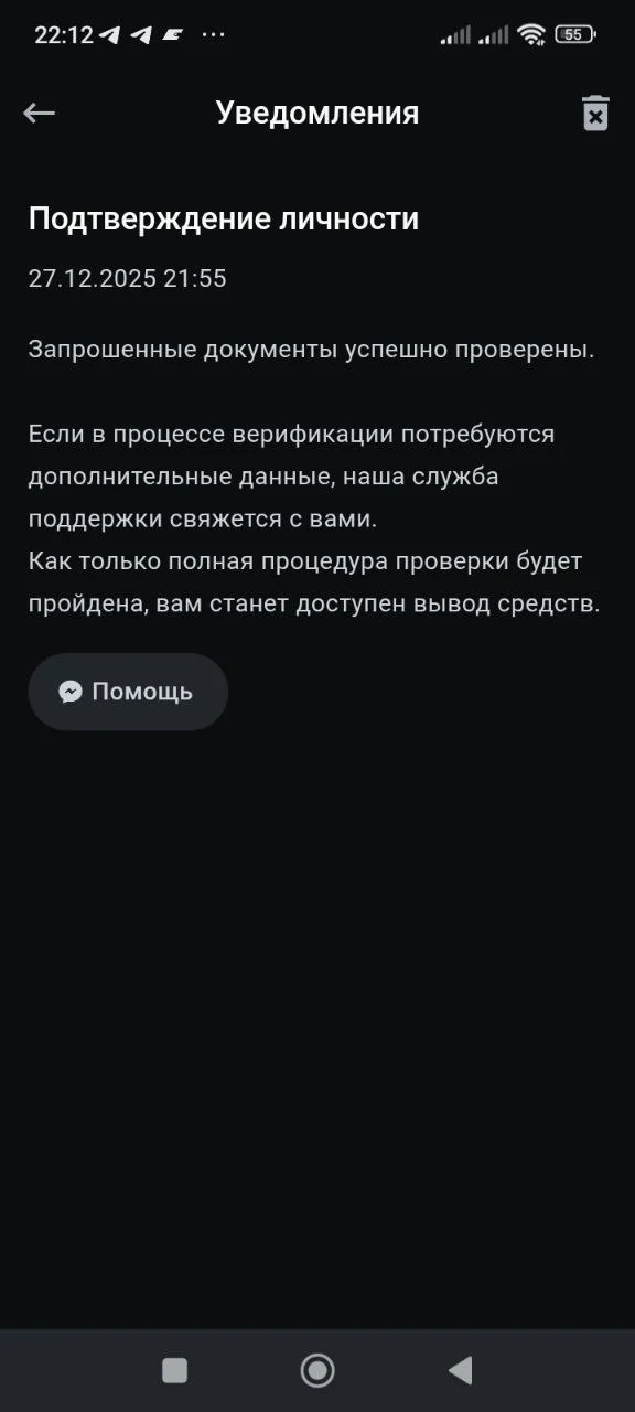 По итогам звонка процедура видеоверификации не пройдена и ваш игровой счет временно разблокирован для получения выплаты.