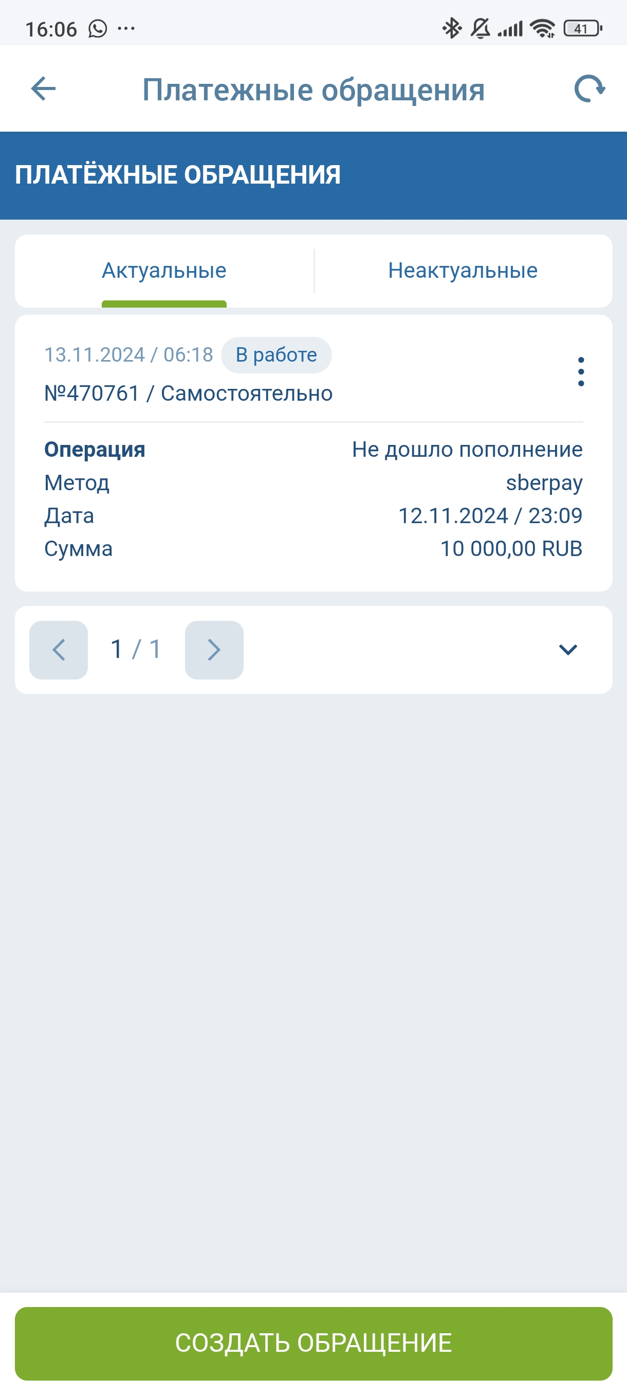 Номер счета 6122133 Пополнил счет с помощью перевода человеку СБП, но к сожалению деньги списали так и не дойдя на аккаунт, решил создать платежное обращение, которое висит уже больше полугода с ноября 2024. Обращение номер 470761