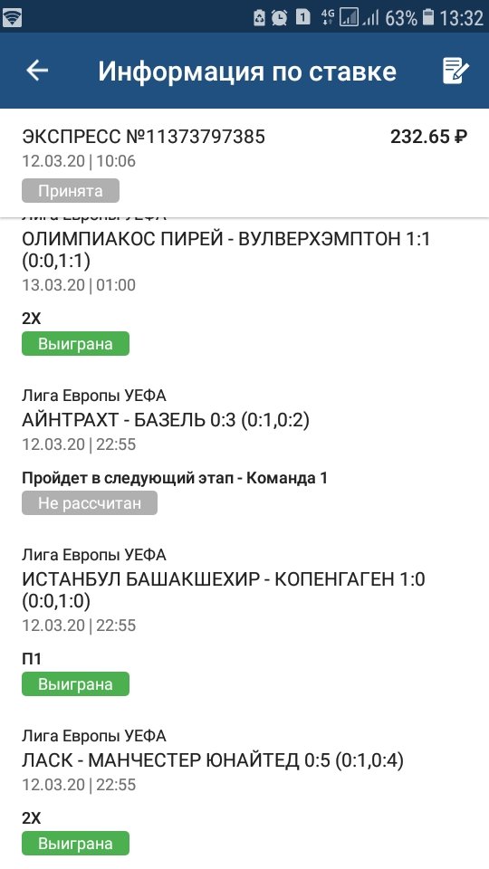 Добрый день! Как будет расчитаны незаконченные экспресс ставки на Лигу Европы футбол