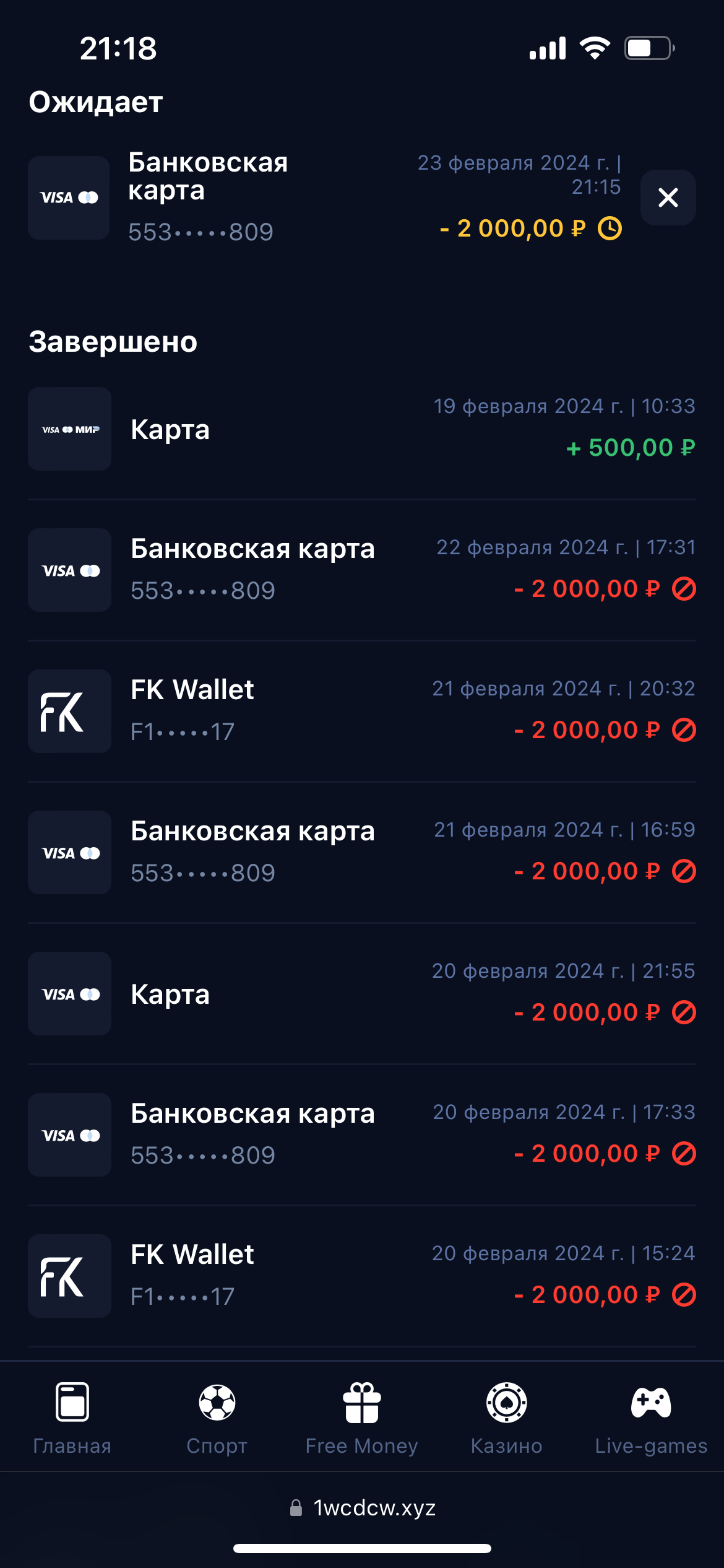 Здравствуйте выводил деньги с 1win в выводе написано что деньги зачислены но деньги на карту так и не пришли обращался в поддержку пишут ждать 7…