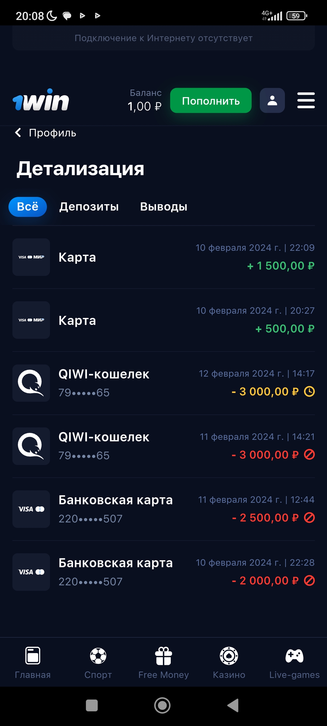 Здравствуйте выводил деньги с 1win в выводе написано что деньги зачислены но деньги на карту так и не пришли обращался в поддержку пишут ждать 7…