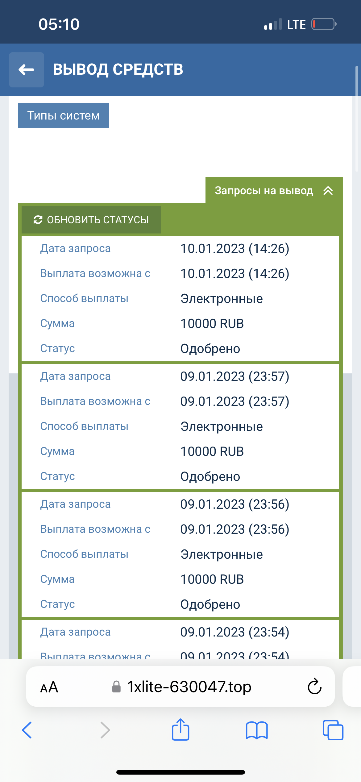 У меня там вывод уже второй день у меня выплаты в общем числе 60к