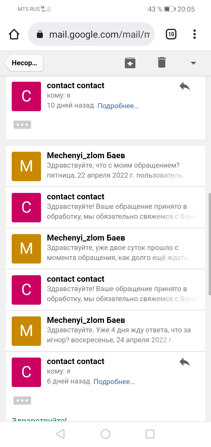 Здравствуйте. Закинул с киви кошелька деньги на баланс, баланс не пополнился, деньги списались, написал в тех поддержку, сперва спросили ID аккаунта, я скинул и теперь уже 10 дней ни на одно сообщение не отвечают, что делать?