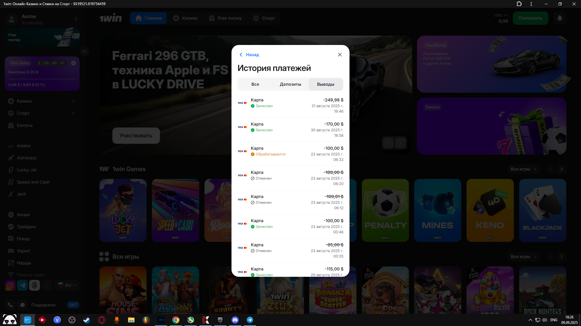 Жду вывод 17 дней с 23.08.2025. Поддержка отвечает скриптами. ID 92651682