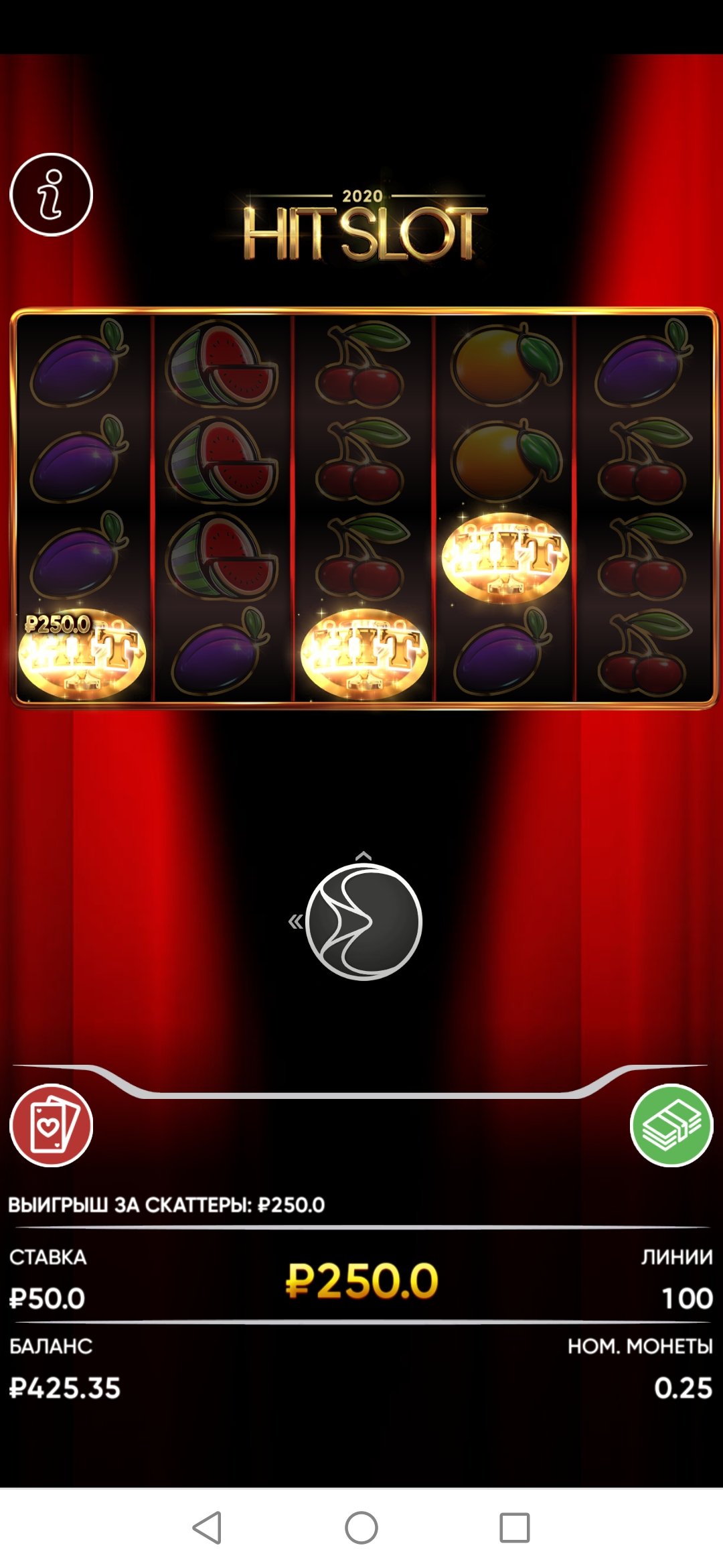 В слоте Hit Slot 2020 отсутствует бонусная игра, выплаты производятся согласно таблице выплат. Как мы видим, Вы получили данный выигрыш.