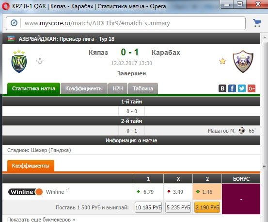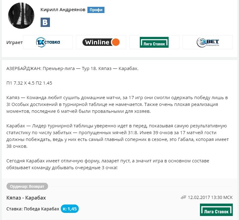 Доброго времени суток, сегодня сделал прогноз на победу Карабаха. Ставка прошла, но расценили как возврат. Почему?