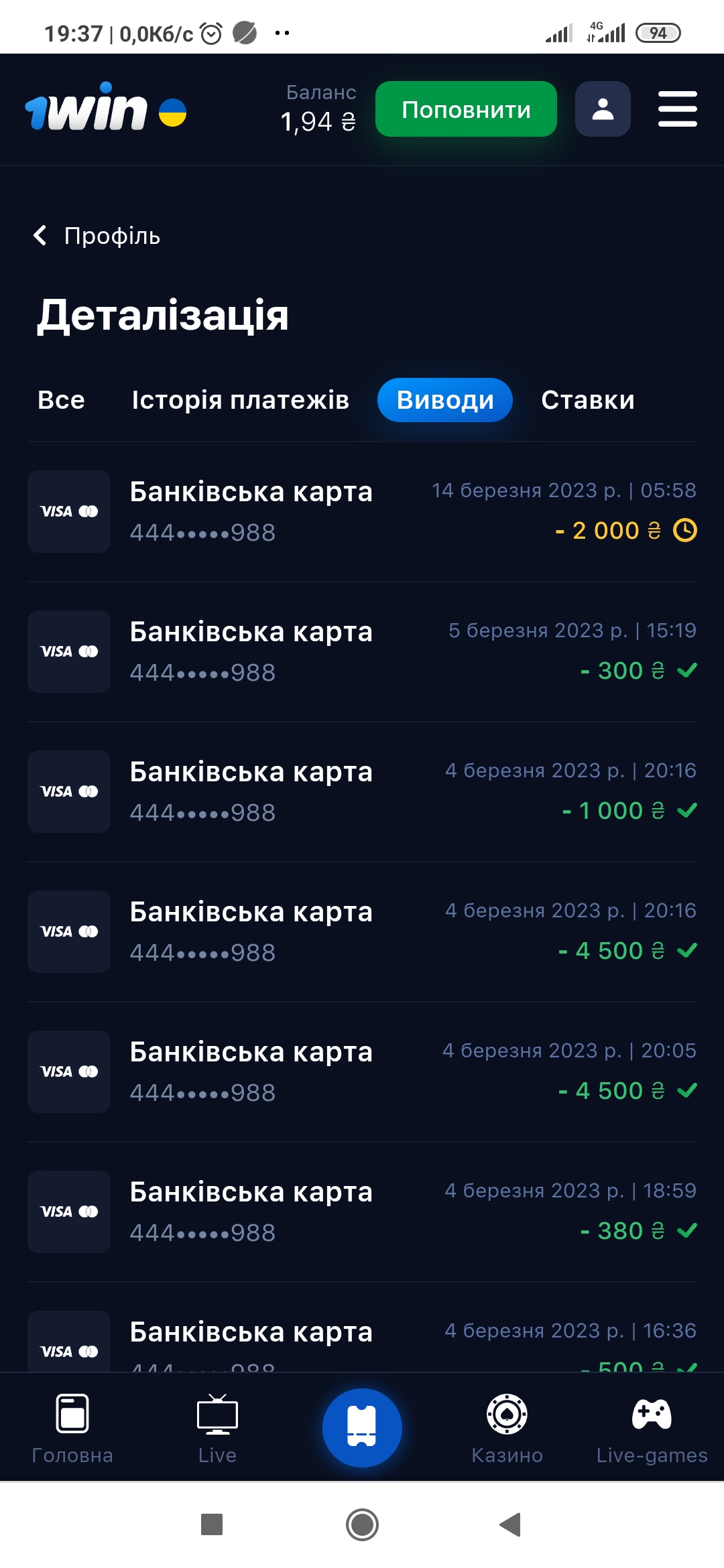 Что с 1win ??? Поставив на вивід 2000грн на карту, но гроші не приходять, раніше на протязі години приходили??? Кидок??? Служба підтримки не працює, ніякий контакт не відповідає, походу почалося кидалово на 1win
