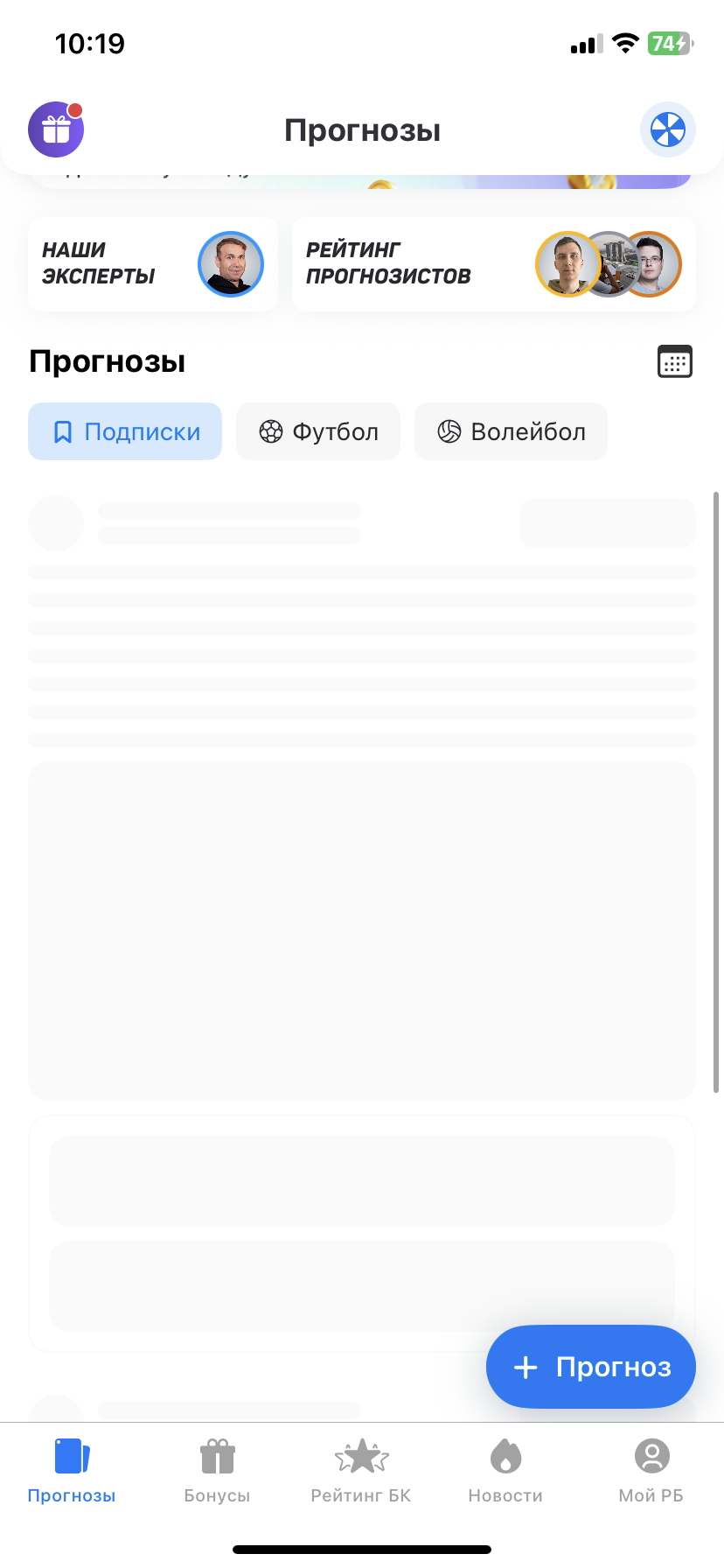 Почему вылетаю из учетной записи в приложении «рб» и не вижу список своих подписок прогнозистов?
