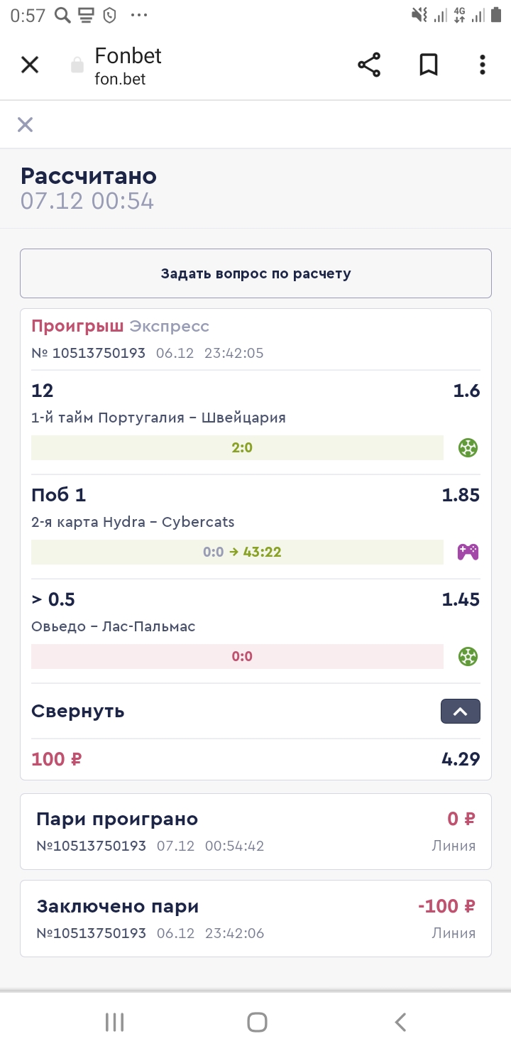 Сергей Кириллов, и как я понял расчет ставки с коэффициентом 1. должно быть. мою ставку расчетали проигрышным