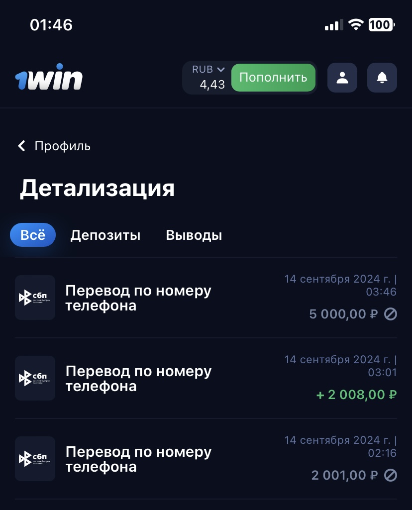 Ван вин не выводит средства по сбп пошли уже третьи сутки !!!! Мало того пишут в поддержке ждать еще до 7 дней . 338878917 Мой…